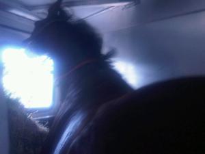 His head was shaking vigorously up and down (always just short of hitting the top of the trailer). His front feet were pawing. His back feet were kicking. He would work himself up to a point where he would start sliding down the wall of the trailer. I was terrified he would slip to the ground and we would both die. Of course, there was moist manure to make it more slippery (and smelly).