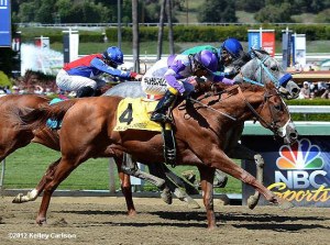 “I’ll Have Another” did not come from a top stable nor was he bred in any extrordinary way.  He has that something special that all Thoroughbred owners look for and few ever actually get.  He was purchased in Florida originally for $11,000.  Too rich for my pocketbook, but pennys to Thoroughbred owners.  The man who bought him, did what Lauren and I try to do at Six Meadow Farm, buy low sell high.  And when “I’ll Have Another”, nicknamed by his daughter as “Cheetos” for his bright red coat, sold for $35,000 to his present owner, they thought they had made a pretty good profit.  Not bad, really, in a world where you are lucky ever to sell a horse for more than you bought it for and certainly enough to cover his costs.  “Cheetos” is worth millions now, even without the Triple Crown win, even if he never runs again.  As a stallion with sellable breeding rights, he will be a hot commodity.  He will be another off-the-track thoroughbred (OTTB).