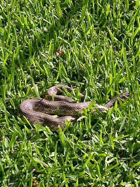 On Monday, to liven things up for her, she found Chloe (our favorite cat) playing with a snake. Not just a snake, but a big snake and we think it is a copperhead. Feel free to educate me if I am wrong. She tried to take the shovel to it and kill it but had to contend with getting the cat away. Oh, and there was the whole Lauren is scared to DEATH of SNAKES! So, I am not surprised she didn’t get it killed. She was far too worried that she would cut off its tail and it would swing around and bite her. The next day she texted me to say that she had gotten a shot gun from her boyfriend, Blake, and was going to shoot the snake. That scared me more than her getting attacked by the roofer guys or bit by the snake. Lauren with a gun was not my favorite visual as I sat in training in Oklahoma.