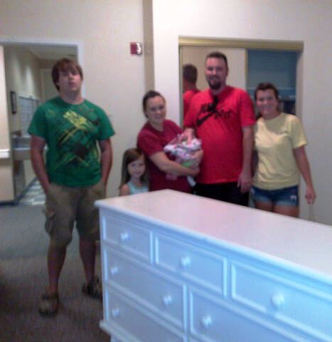 Yesterday, Blake, Lauren, Luke, Ally, Jordyn, baby Kendyll and I moved the big furniture into the nursing home. It is going to look so nice. Her mattress and box spring should be there today. We all went to Sunday dinner as a family-something we do not do enough of and ran into our friends the Davangs. So great to have them see the new baby, trade horse stories and fellowship.