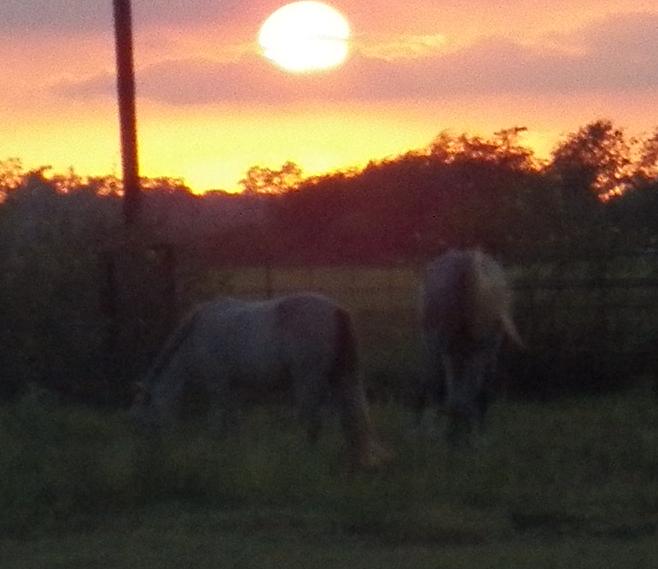 Rain finally broke over our little farm and brought some much-needed moisture to our pastures. Mickey seems to be breathing a little better in the aftermath of the storm. The rain knocked the dust down and the wind blew the humidity out so it was a pretty pleasant evening. Roland had come the night before and we were anticipating problems with little Mimi. Caroline had told me she was fine for her farrier but I was reluctant to believe it. We had Roland a little amped up, telling him the pony had broken a rib with the other farrier, and overall was a little loco. Mimi came out of her stall, sized up the situation and stood still for her pedicure. We kept telling Roland that the next foot would be the bad one, so he kept bracing for the worst. Never happened. She was great.
