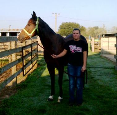 Is Mickey still coughing? The answer is still yes. But we have another factor that may be playing a part. Mickey’s pedigree includes the great but tragic Quarter Horse, Impressive. Impressive was an Oklahoma bred (as was Mickey) World Champion Halter Horse.
