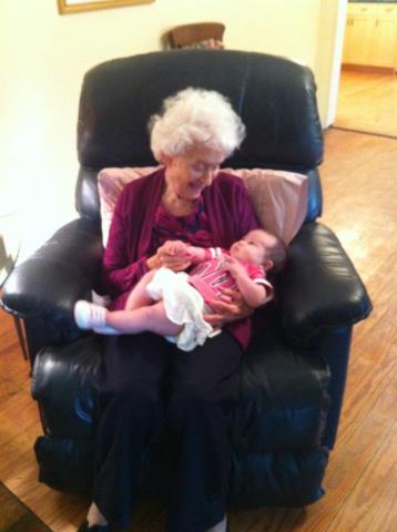 She seemed subdued yesterday. But she wanted to see baby Kendyll. A great-grandma holding her great grandchild. It was a special moment. A rare moment these days when the clouds have not settled too close to her brain.