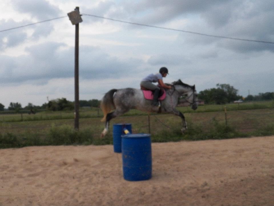 The first time we jumped her, we were caught off-guard.  These barrels are a little over three foot high and Feather was easily jumping over four foot.  She is a natural and while we are taking it slow, she has not yet given us a clue as to exactly how high she can jump.  But boy, she can jump!