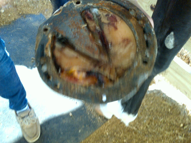 0 122112 crackShortly after surgery when they were able to get a shoe on him.  Still big gap between the shoe and any hoof.