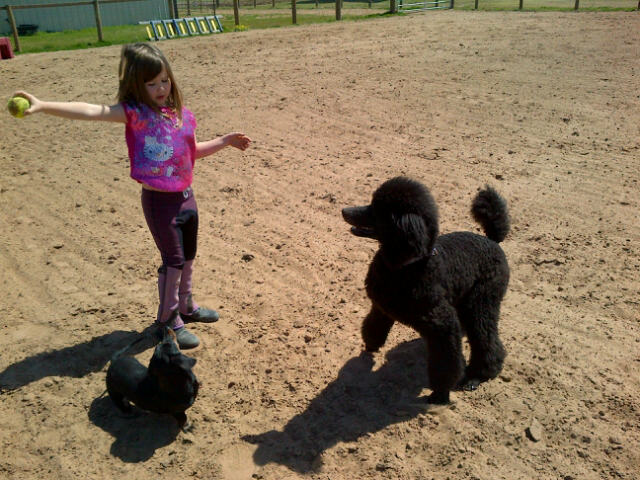 Lauren and Megan headed back from Galveston Island today and picked up Jordyn on the way home. The weather was beautiful and it was a great afternoon to spend on horseback. While Megan was riding Mickey and Lauren riding Feather, Jordyn enjoyed playing ball with new dog, Kona in the arena. I figured it was good for Feather to have a ball-playing dog running around the arena. And I was proud of Kona as he stayed focused on the game and never offered to chase or bother the horses. The biggest surprise was when little miniature dachshund Lula decided she wanted to chase the ball as well.