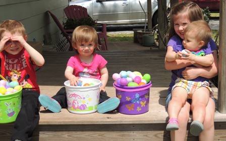 Amber, Lexi and Riley got in early on Monday. The Easter Bunny had hidden lots of eggs in the yard and they all had a ball running, playing and shrieking over the finding of the eggs. We enjoyed the afternoon and it was soon time for Lauren, Kona and I to head off to obedience class. Amber and family spent the night with Ally.