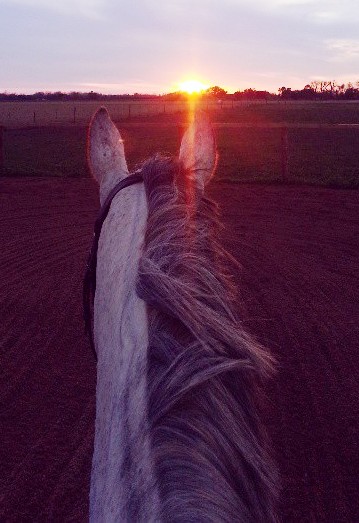 Lauren got out to ride last night after a couple of days of rain. I didn’t watch but she snapped a great shot of the sun dropping in the evening sky.