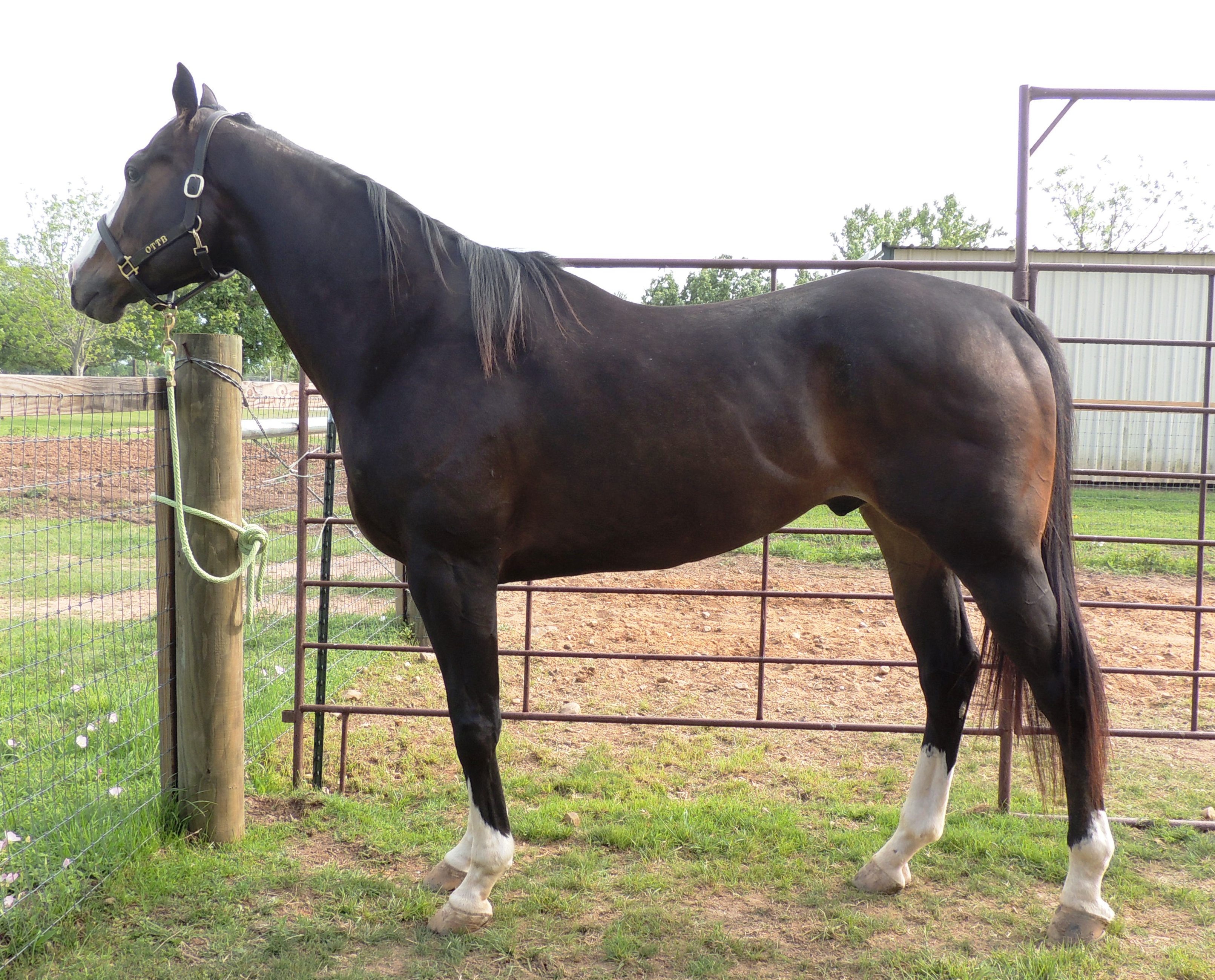 I looked up a picture of Indy which is seen above and set out today to take a picture to show why Sean stopped in his tracks when he saw the big horse yesterday. So, I don’t have the fancy background and my horse is not as spit polished as Indy. Actually, Lauren is gone today and I struggled just to get his OTTB halter on but I think it shows genetics in action. I love these thoroughbreds and the stories behind their lives. It makes me even more inspired to do the best I can for this horse who got left behind because of his bad foot.