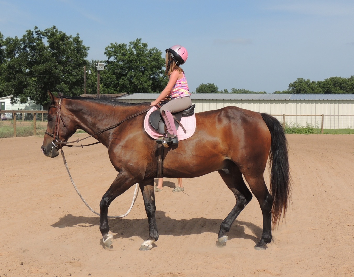 The best I had to offer for her to ride in my barn was Mickey. The semi-retired jumper living a life of ease, he has not been worked consistently at all in the last months. Mickey can be very nice to ride. I would put beginner adults on him and expect he would behave. But Mickey can assess a situation pretty readily. Horses can read their rider. And Mickey is certainly a pro at taking advantage of any situation. A 45 pound child would be no match for him if he decide to buck, take-off or act up. How re-assuring that was!
