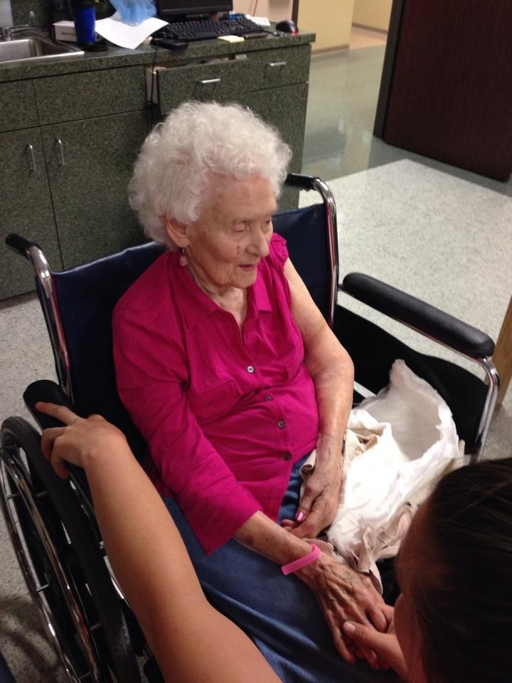 I was tied up at work when momma’s next appointment rolled around. My daughters are uncomfortable taking their Nanny places, especially now with bones already broken, but they teamed up to help me out.