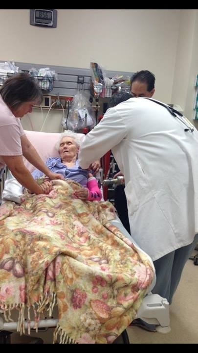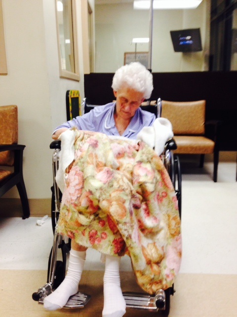 Later, Janet, the sitter, called to tell me my mom’s fingers were swollen and turning black. I knew what this meant. She had fallen on the bad arm, it was swelling inside the cast with no where for that swelling to go. I called her orthopedic doctor and was told to go to the ER, have them remove the cast, x-ray it, then put a splint on it. We were out to dinner, but hurried home. Ally arranged for her in-laws to come pick up her kids, so she could go with me. Lauren stayed to do all the horse chores.