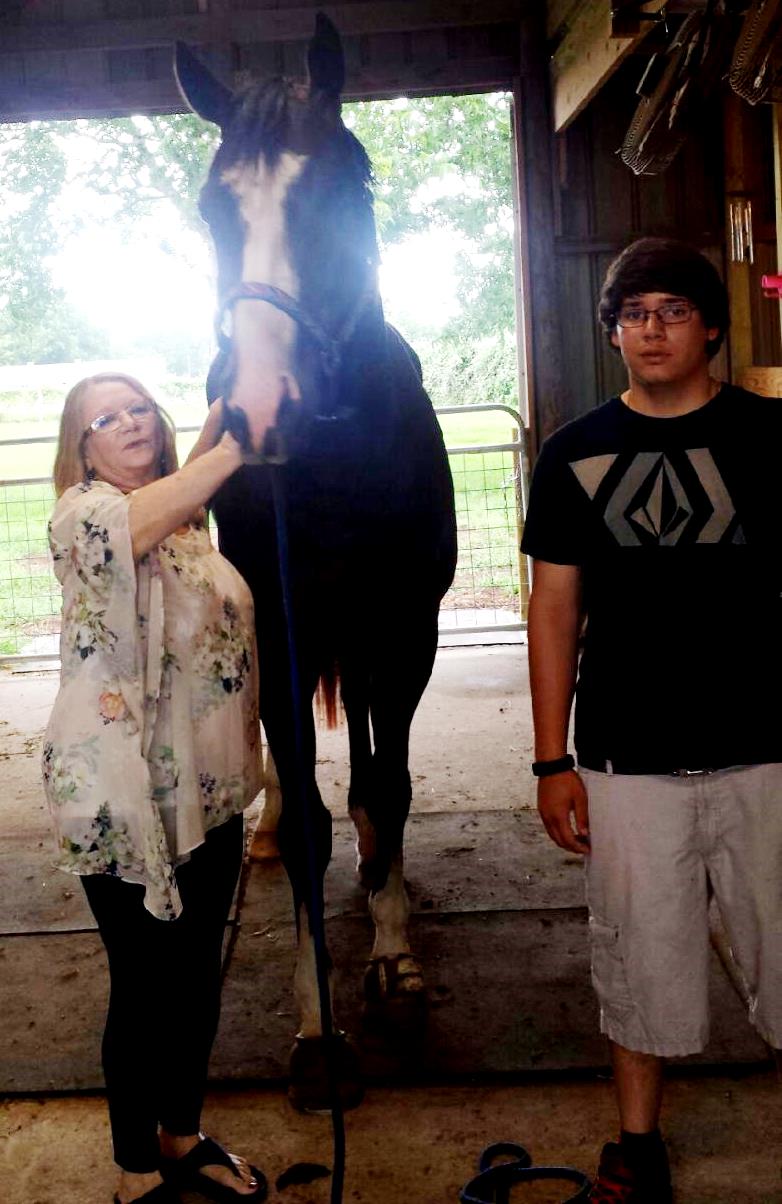 Deb has followed my blog from day one. She rode horses and my uncle had racing quarter horses for years. Some of my fondest memories were of horse drill team in Shawnee, Oklahoma under the lights in the summer evenings. She couldn’t wait to met my Bruno. He was a little dirty from the surprise afternoon shower but it didn’t stop him from posing with my cousins.