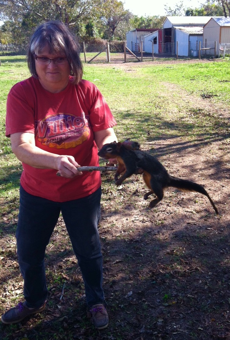 I was using broken branches as chop stix to carry the dead squirrels away. Note I am carrying the squirrels and my friend is taking photos.