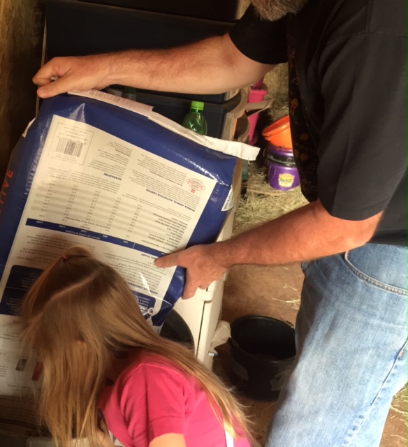The first to arrive was Ally with Jordyn and Kendyll. From the first moment, Chris engaged them with book activity and then came up with a plan for all of us to go pick up rocks on the drive way Then we used the rocks to fill up some pretty big holes that had developed with the rain. Ingenuity.As Jordyn got ready for her lesson, Kendyll joined Chris and I in the feed room. Kendyll was already calling out to “Grandpa Chris” and sternly lecturing him on how to manage the feed process. They were pretty cute.