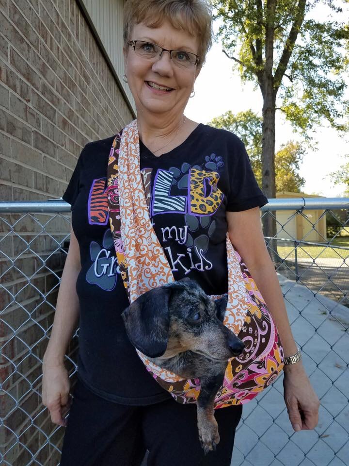 I had told Jo Ann over and over to get Sammi a sling so she could be carried around hands free. Sammi’s grandma got her one and they go everywhere together. A dog could not be loved more.