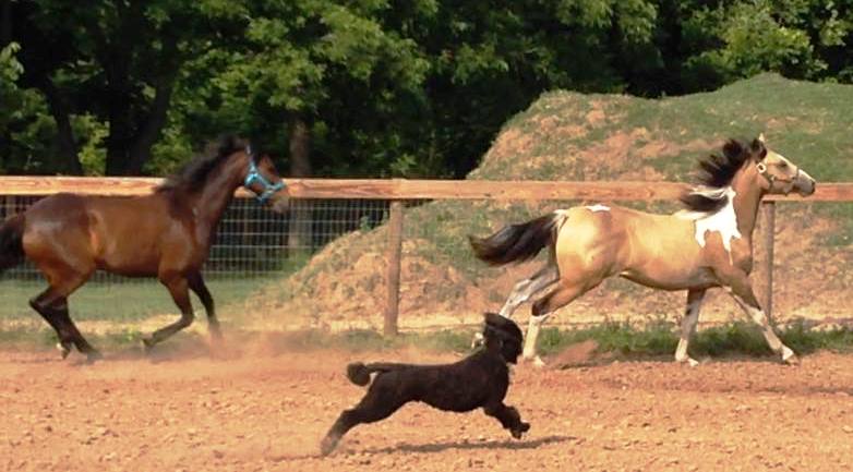 After my stint with Nova, I got Betty Sue out. She is two and a half now. Many Quarter horses and thoroughbreds are started under saddle by this time. However, she is European warmblood and they tend to mature more slowly. We won’t be really riding her for another year or so. But there was nothing to stop me from continuing her education. I saddled her up with my heavier western saddle-just so she could get used to weight on her back and the heavier stirrups flapping at her sides. Everything done quietly and easily now will pay off in spades when the time comes to actually ask her to accept a rider.