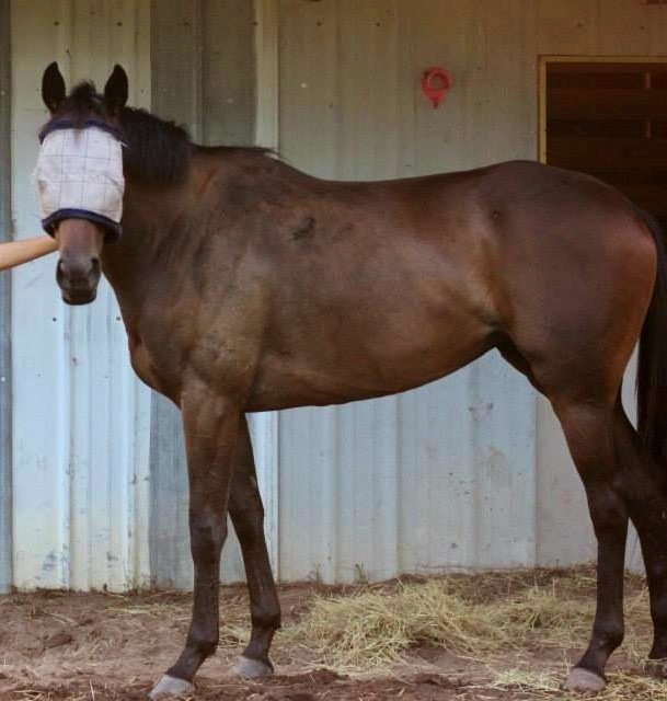 The foal was a shade over 9 hands and about 105 pounds. She is solid brown with no white on her, an exact duplicate of her momma. Flagmount’s grey may well be hidden under the brown coat although I don’t see the tell-tale grey around her eyes. She was quite the little charmer, yawning, smiling and primping for the camera. She has an interesting swirl on her forehead that one of my friends described as looking like a Cinnabon. I remember reading about one Grand Prix rider that only buys horses for the Grand Prix that have at least two swirls on their forehead. This little should be super jumper with her giant swirl.